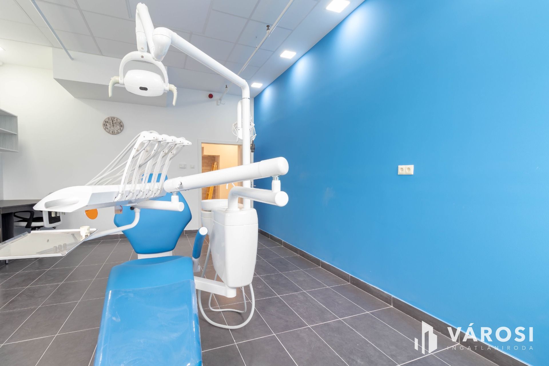 Rendelkezésre áll a további 5 rendelővel közös használatú sterilizáló helyiség, röntgen helyiség, valamint személyzeti öltöző és teakonyha.