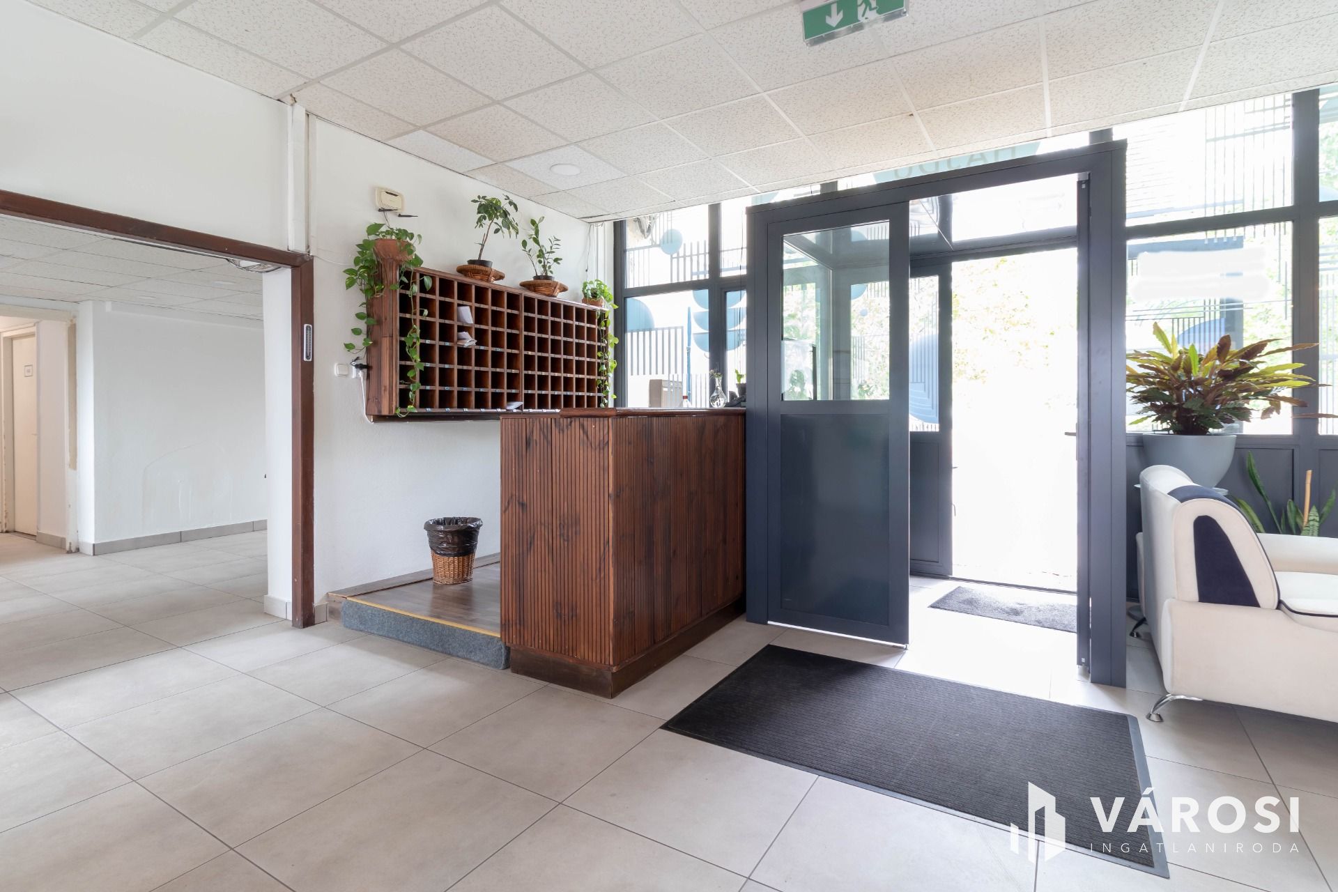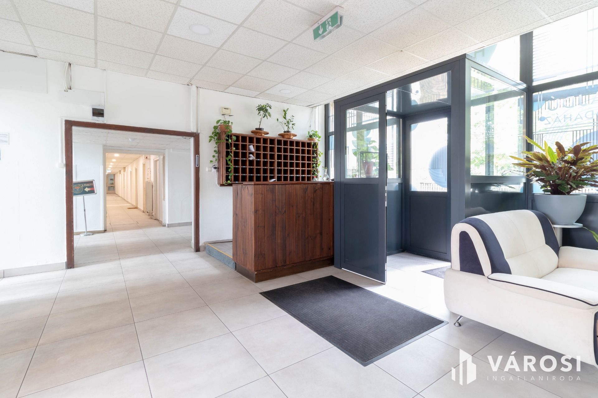 A 3 emeletes irodaépületben felújított elektromos hálózat és műanyag nyílászárók adják az irodák modernizált hátterét.