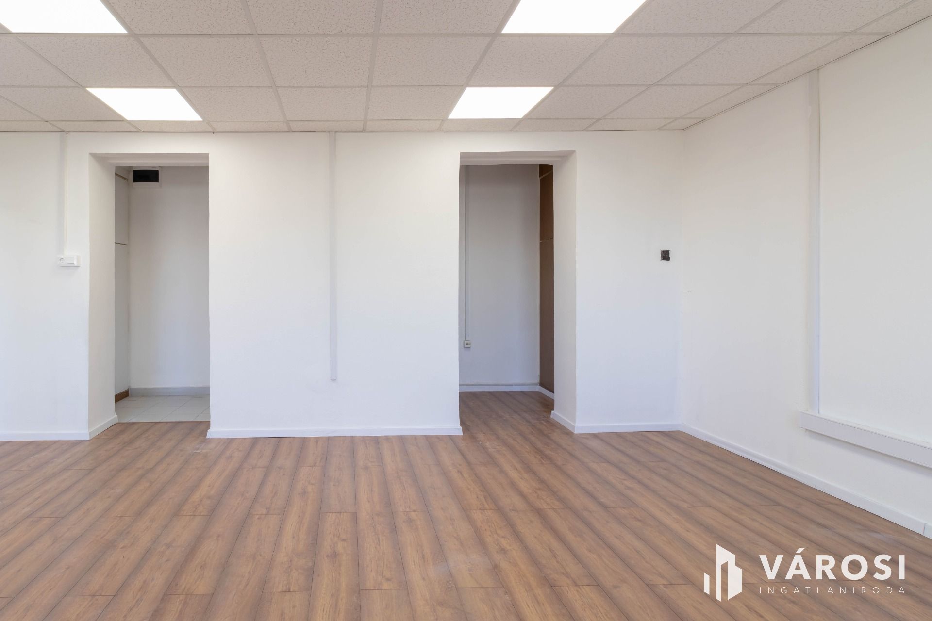 A két egymásból nyíló helyiségből álló iroda az irodaház 2. emeletén helyezkedik el. A helyiségek laminált padlóval burkoltak.