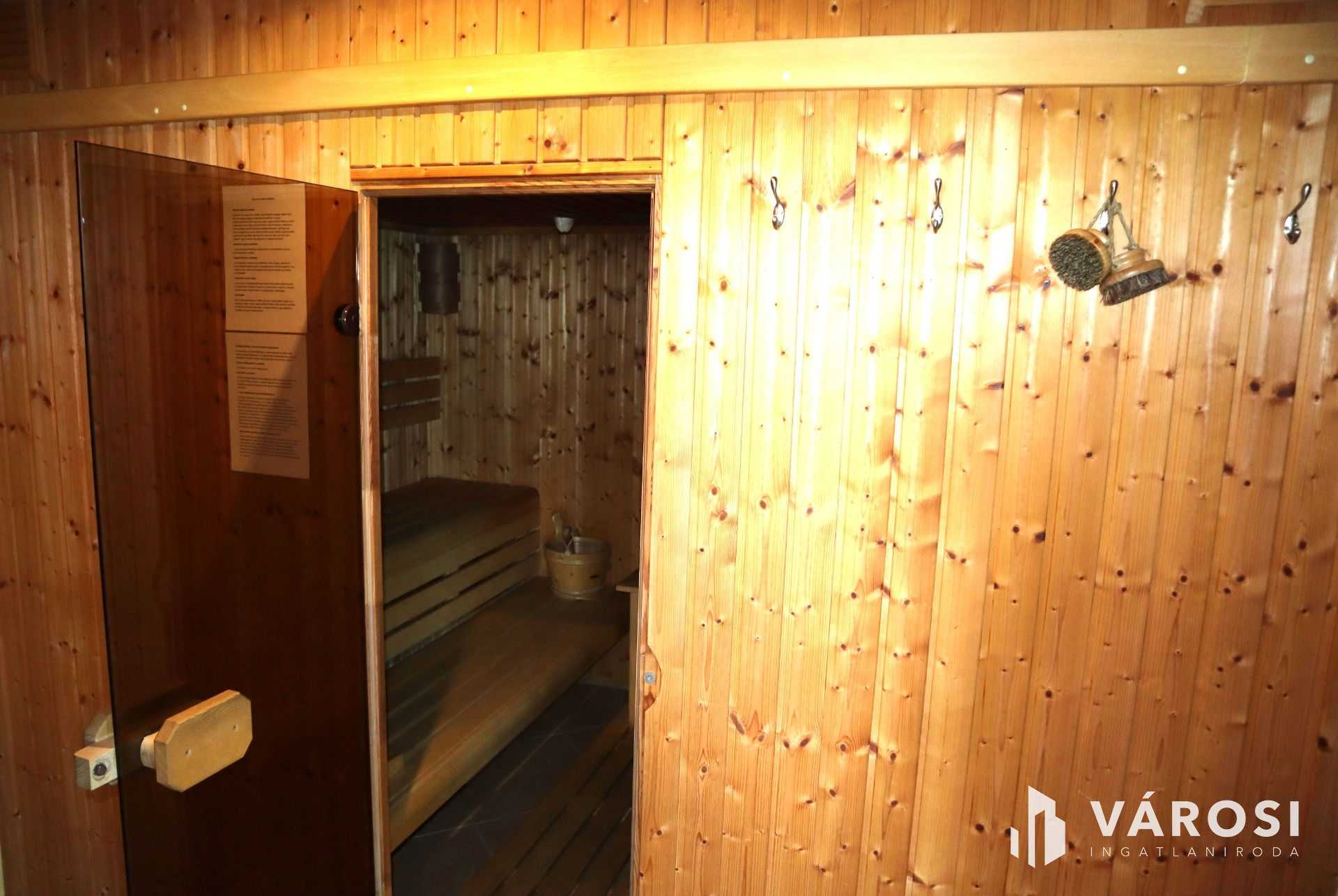 A földszinten található az ingatlan ékköve a saját wellness részleg is. Itt finn szauna, gőzszauna, és dézsazuhanyzó is kialakításra került. A fedett teraszon pedig a jakuzziban élvezhetjük a fantasztikus kilátást.