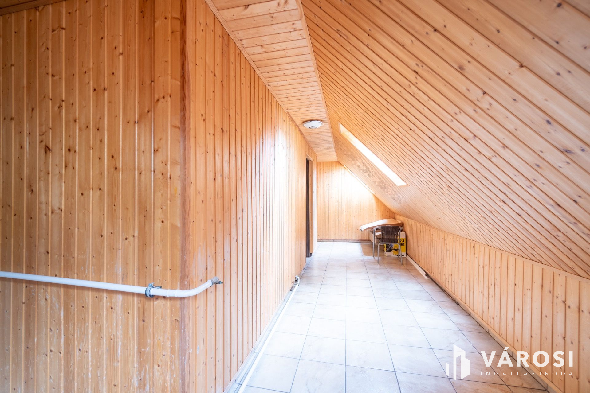 The separately formed, 120-sqm mansard is actually a totally renewed flat having two rooms, a bathroom and a spacious kitchen.