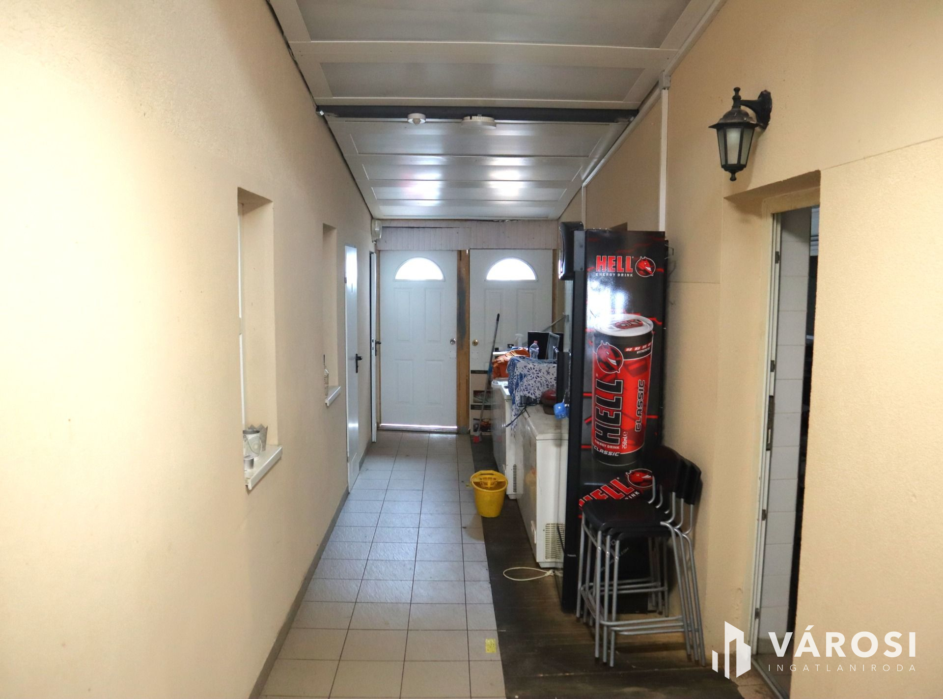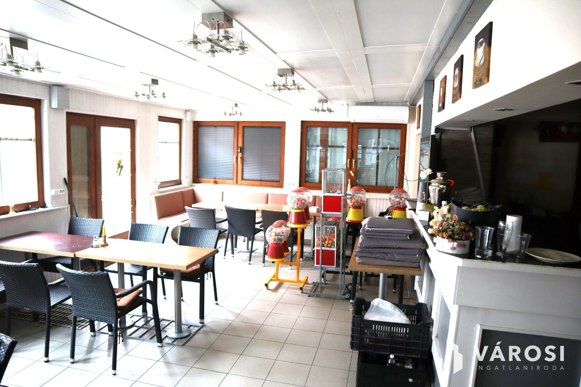 A 120 m²-es két szintes épület kiváló állapotban van, mivel az évek során folyamatosan karbantartották és felújították. A földszinten elhelyezkedő jelenleg pizzériaként működő vendéglátóhely felszerelt konyhával (teljes technológiával, HACCP minősítéssel) és berendezett vendégtérrel rendelkezik, amely a vételár részét képezi.