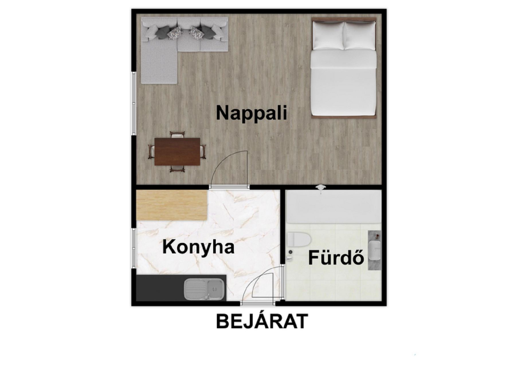 -29nm-es lakás(konyha, 1 lakószoba, fürdőszoba)