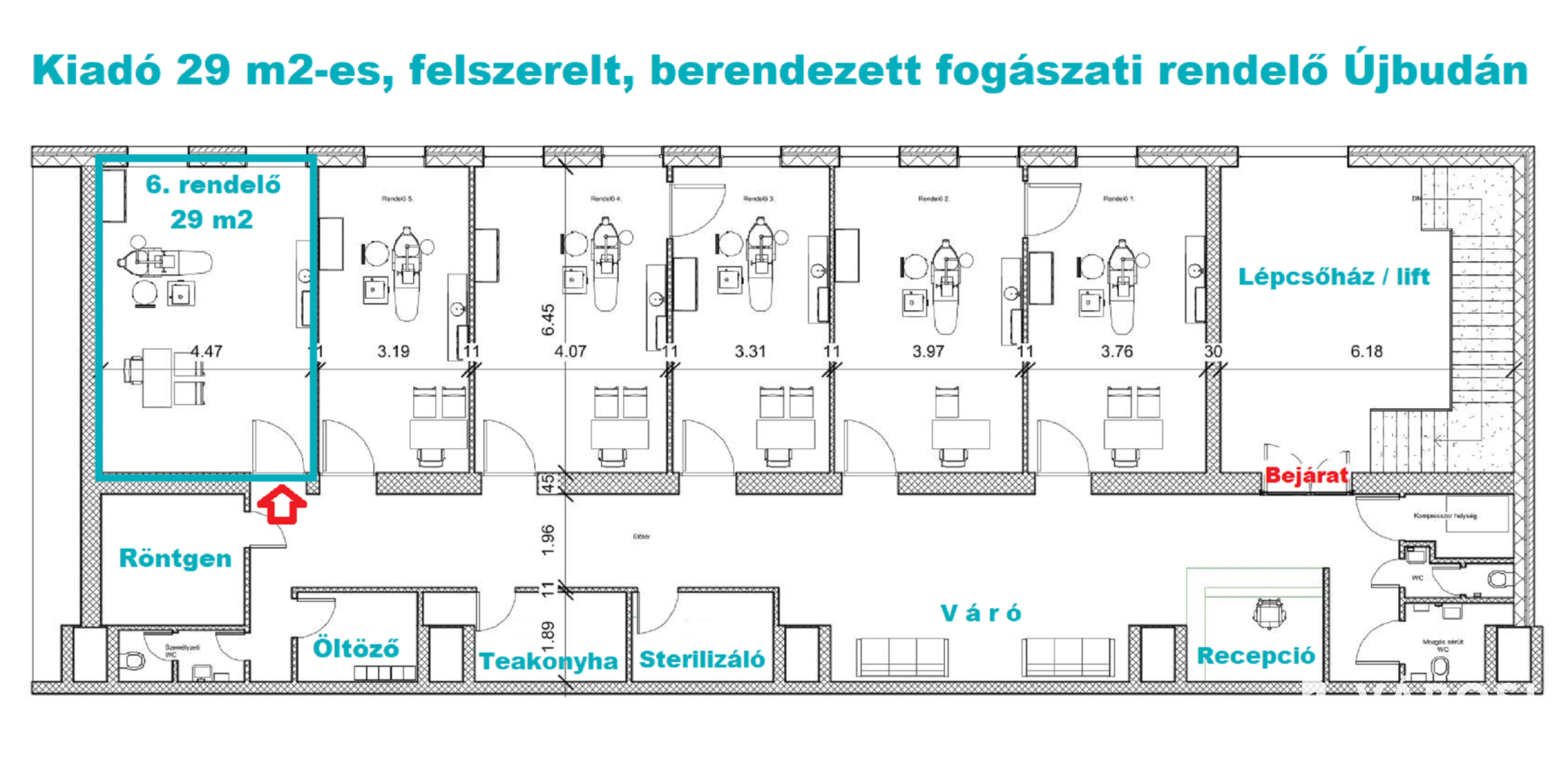 Kiadó 29 m2-es felszerelt, berendezett fogászati rendelő