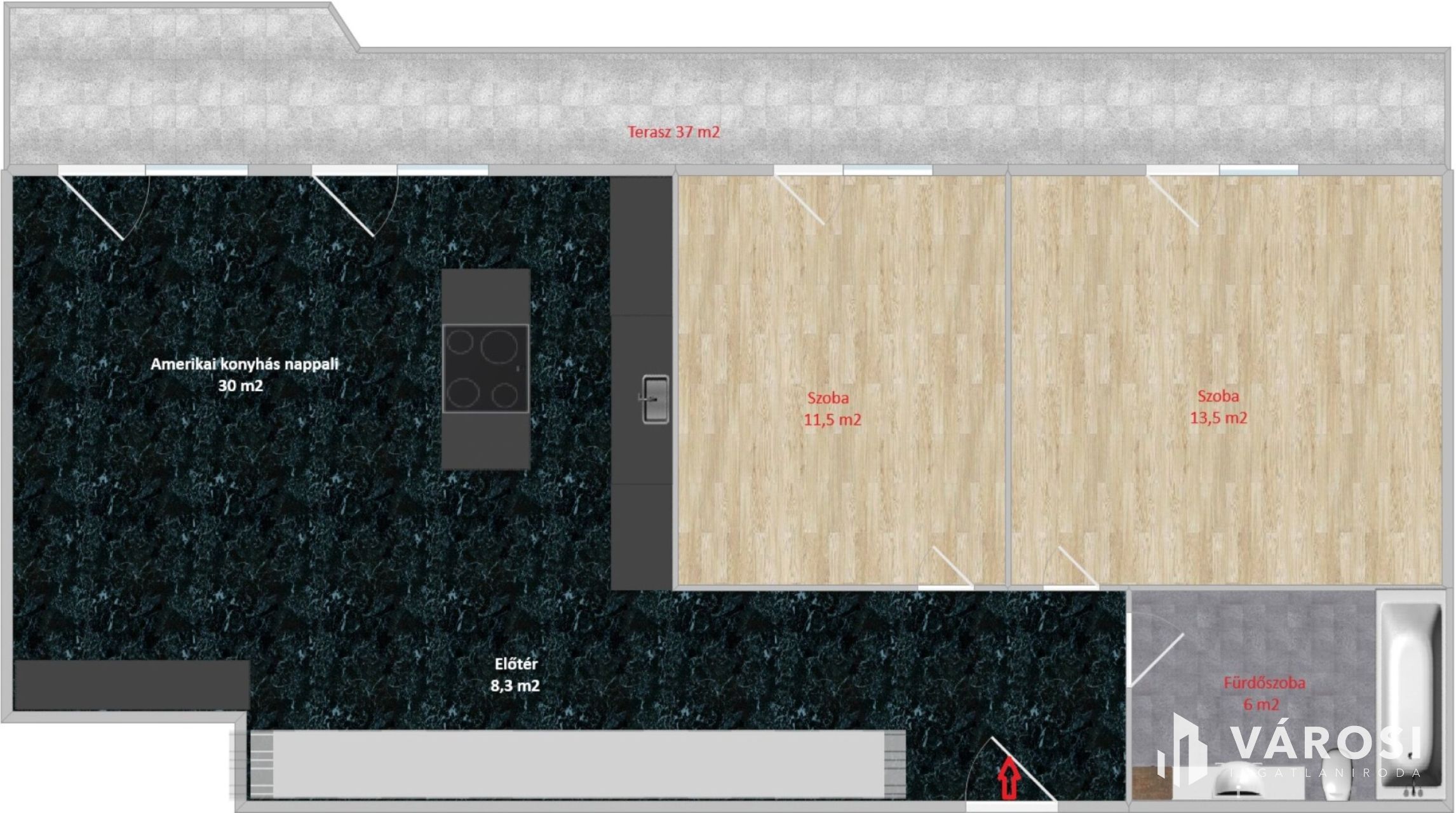 Exkluzív, azonnal költözhető luxus lakás Angyalföldön – amerikai konyhás nappali, 2 külön nyíló hálószoba, kádas fürdőszoba és előszoba. A modern, átgondolt elosztás ideális saját célra vagy befektetésnek egyaránt.
