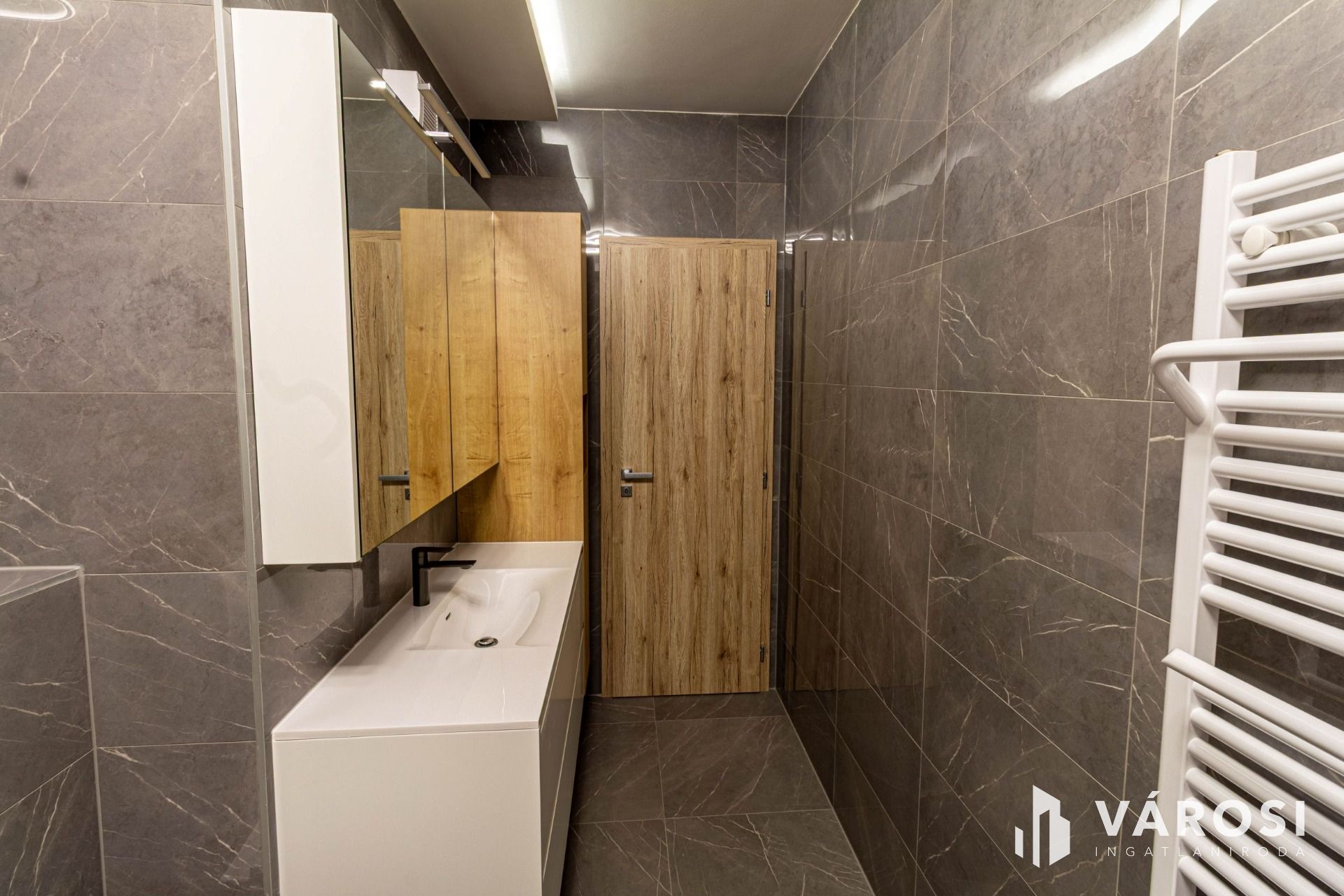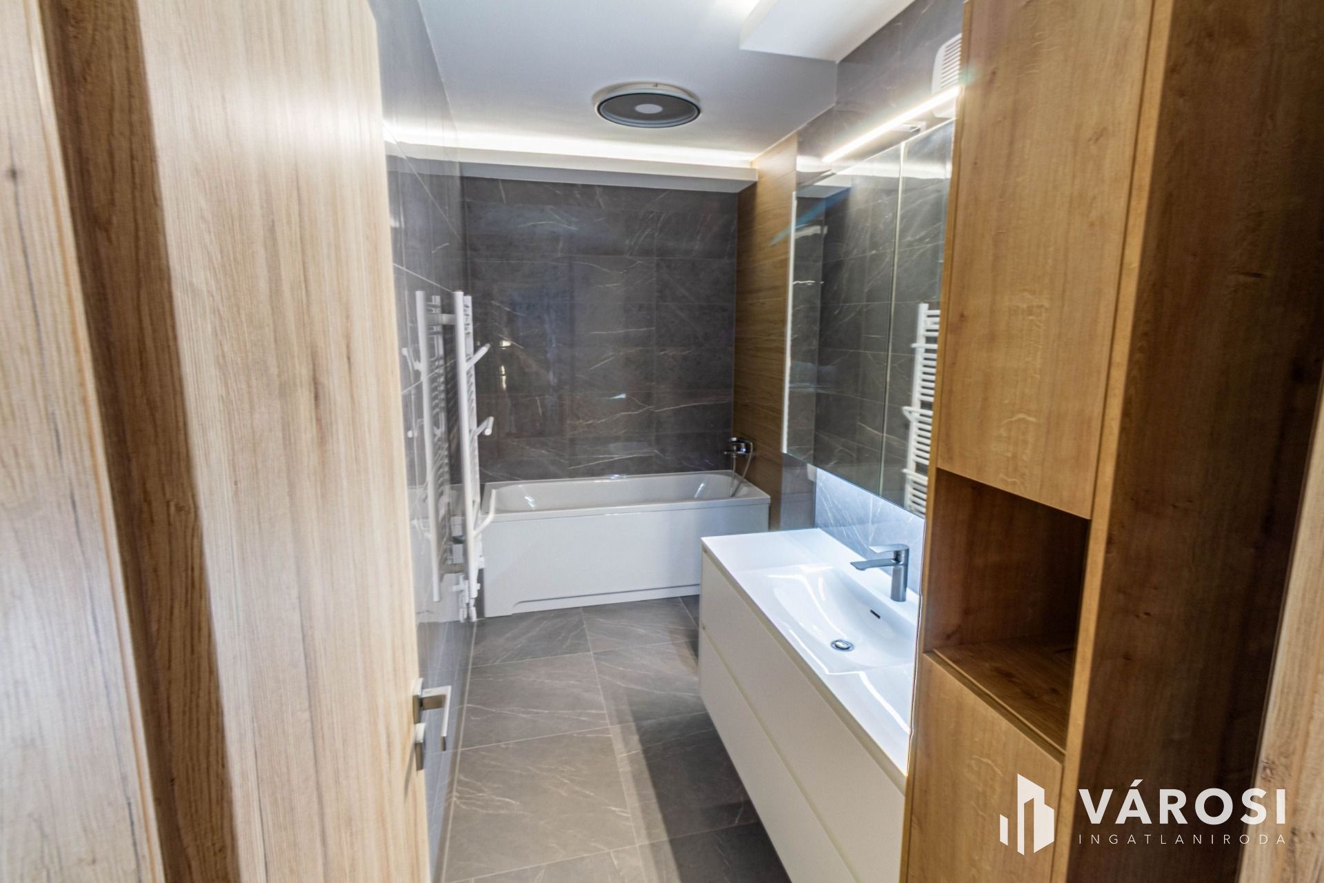 A lakás belső színei, a csempe és a bútorok harmonikus, kellemes összhangja nyugodt, megnyugtató és egyben elegáns légkört teremt, ami az otthonosság érzését azonnal átadja.