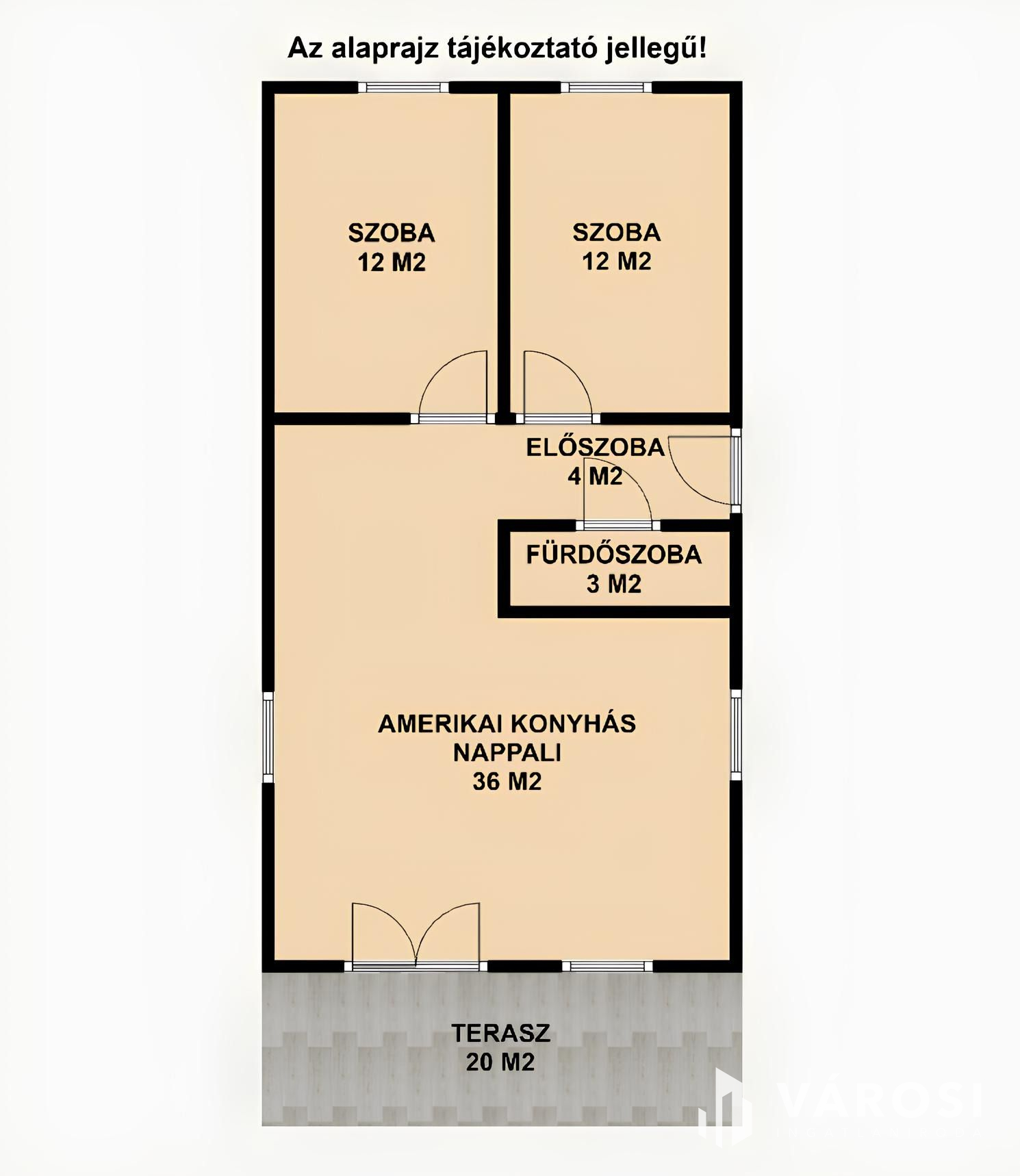 Az ingatlan elrendezése praktikus és kényelmes. A házba belépve az előszobába érkezünk, jobbról helyezkedik el 2 db 12 m2-es szoba, balról pedig egy fürdőszoba ( tusoló+wc ) valamint a tágas amerikai konyhás nappali, ahonnan kijárásunk van egy nagy 20 m2-es teraszra. A fürdőszobában kapott helyet egy 120 literes Ariston WiFi-s vízmelegítő. A ház amerikai konyhás, mely modern és praktikus megoldást nyújt a mindennapi főzéshez.