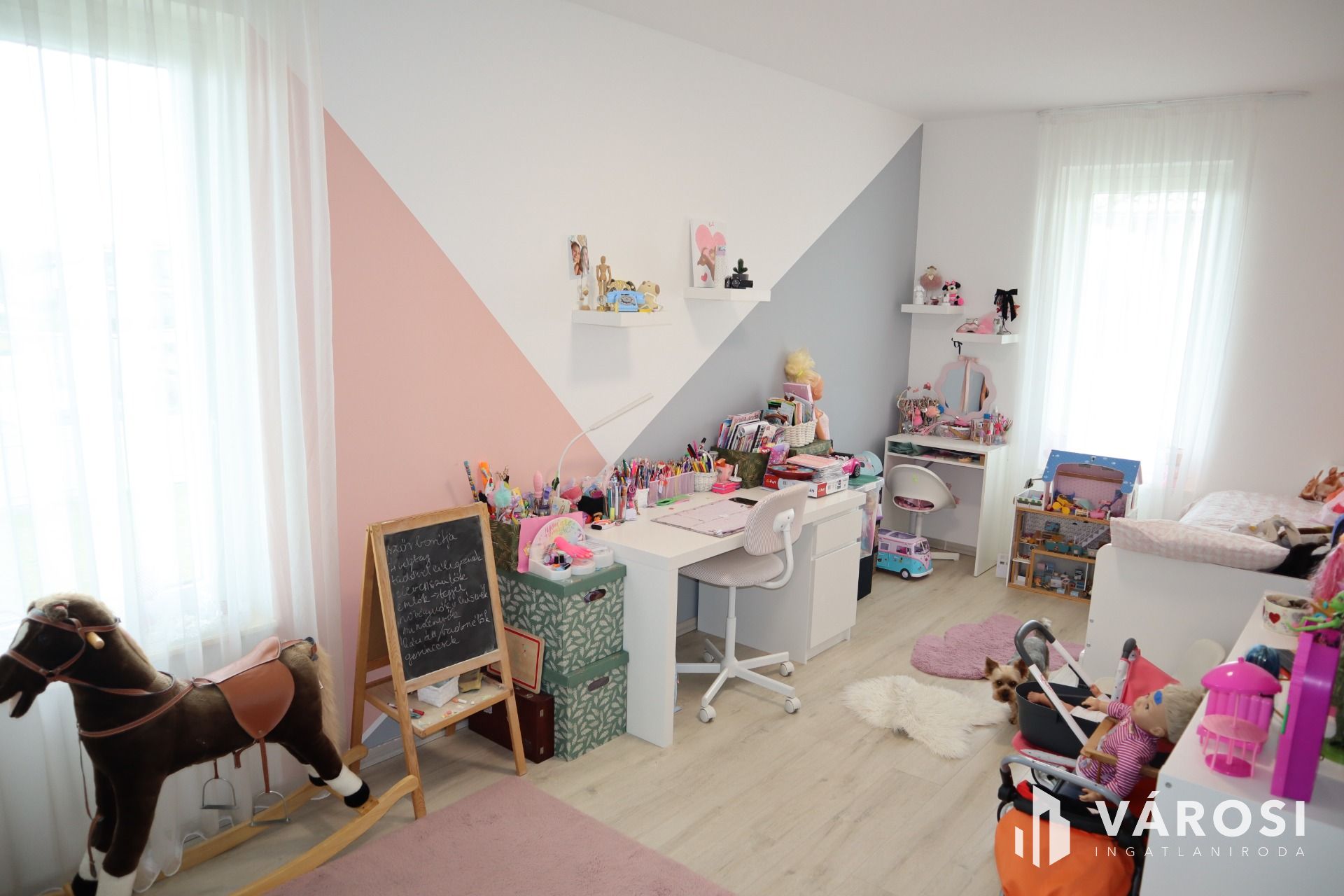 - **Szobák száma:** 3 szoba (az egyik jelenleg gadróbként funkcionál) + amerikai konyhás étkező-nappali