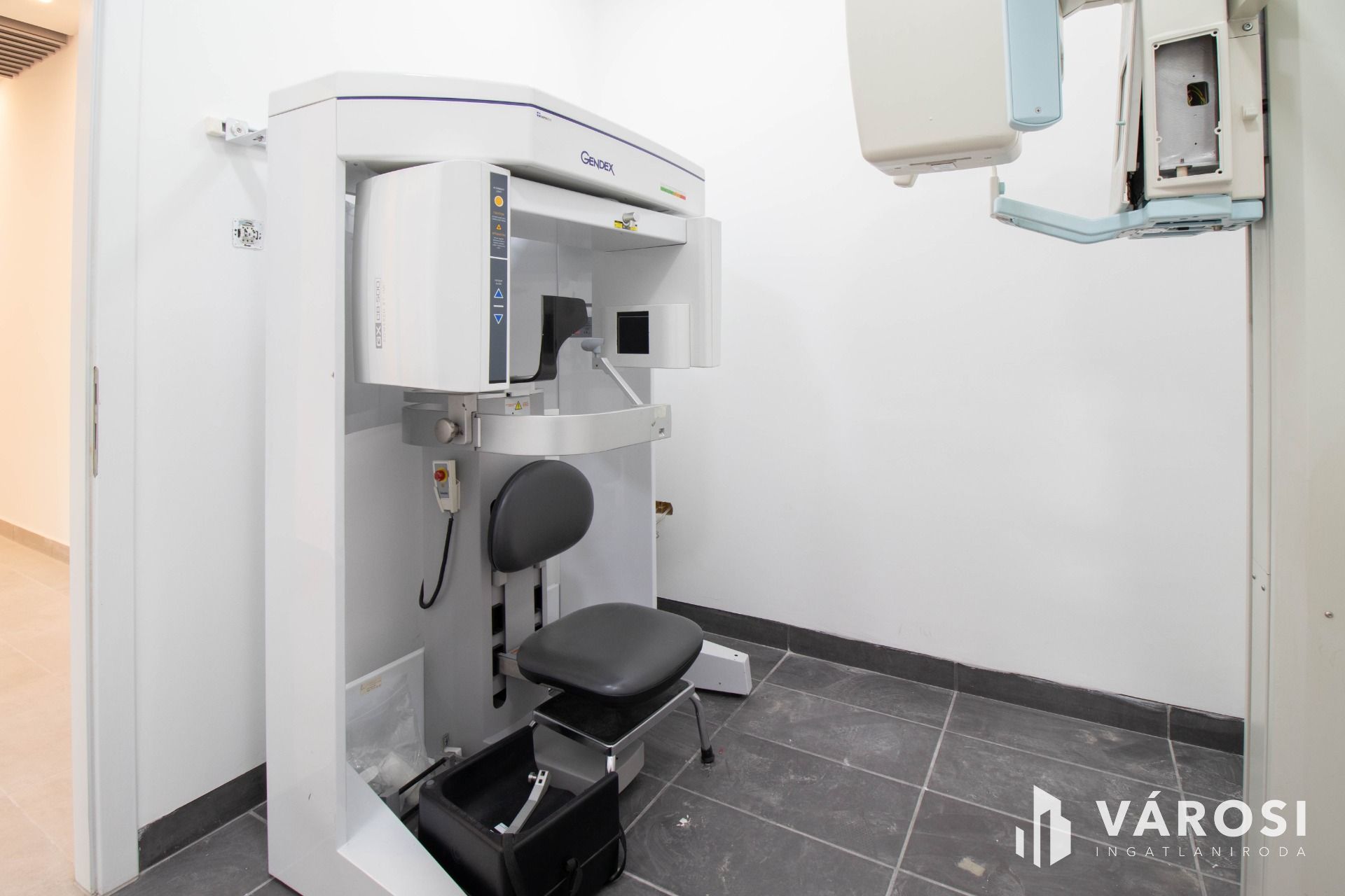 Rendelkezésre áll a további 5 rendelővel közös használatban sterilizáló helyiség, röntgen helyiség, valamint személyzeti öltöző és teakonyha.