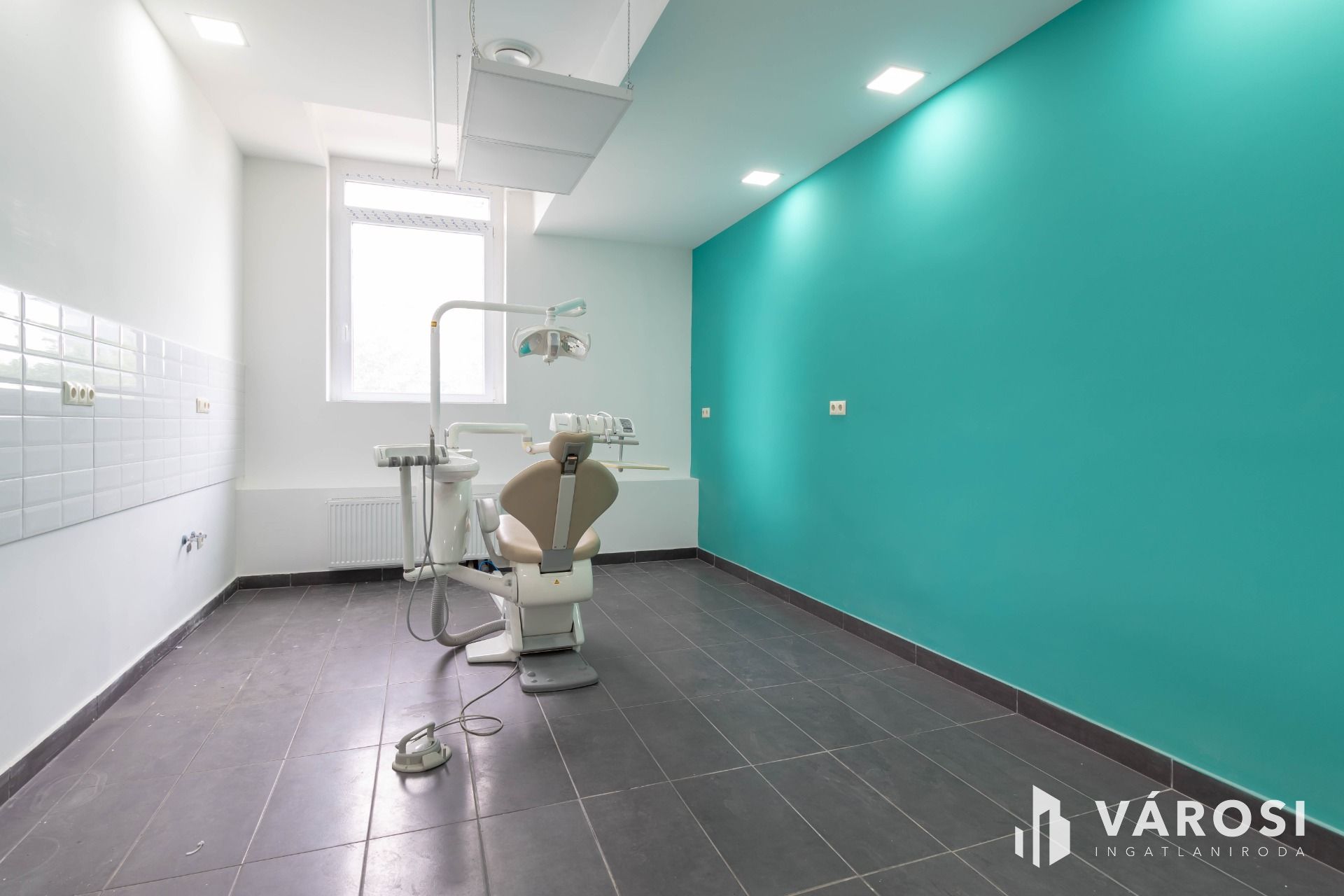 A komplexumban egymás mellett 6 rendelő kiadó, ez a rendelő 24 m2 alapterületű, teljesen felszerelt, Optimal 09 kezelőegységgel, fogászati eszközökkel és rendelői bútorzattal ellátott.